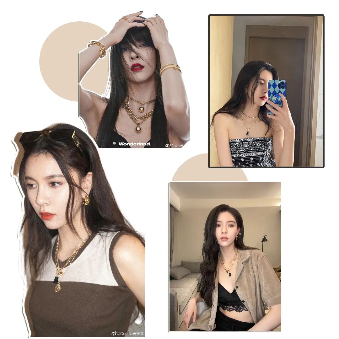 CC也很爱金色饰品,不管是休闲穿搭还是偏正式的穿搭都能和金色饰品完美match,且五官比较立体大气的长相和金色饰品适配性更高。