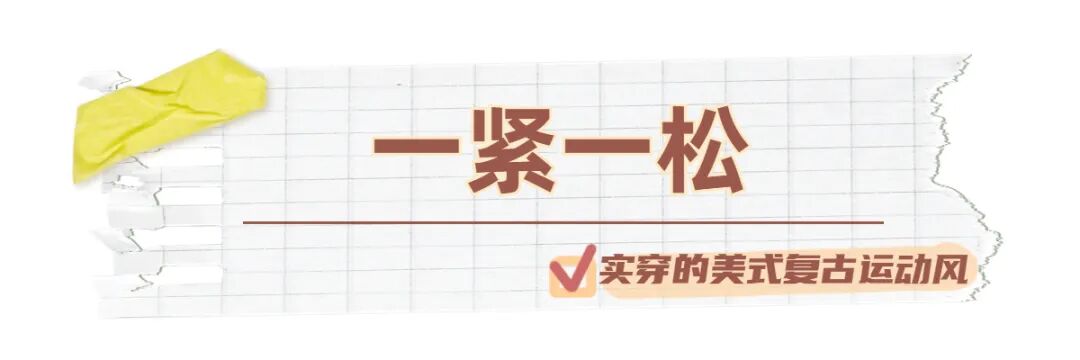 美式复古运动风最重要的一个特点就是“一紧一松”,紧身短t+宽松休闲裤 or oversizeT恤+骑行裤的组合经久不衰。
