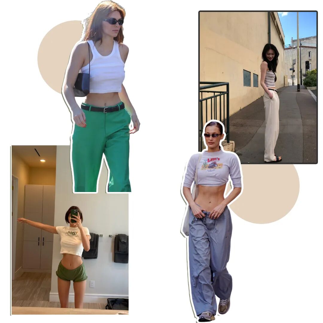 或者试试oversize上衣match高腰裤,点睛之笔就是一定要把上衣往里卷or塞进裤子里掐出高腰线,搭配一顶棒球帽就是欧美青春校园剧的女主角。
