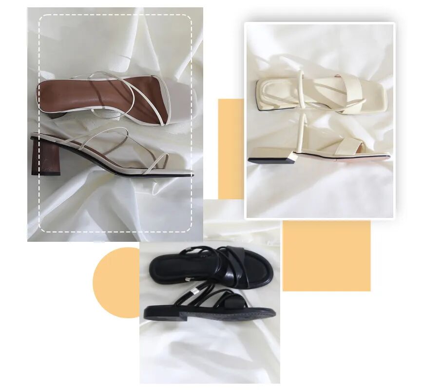 他家的细带凉鞋一定要买!配色炒鸡清凉舒服,设计就是一字带但match粗方跟很有知性优雅的感觉。
