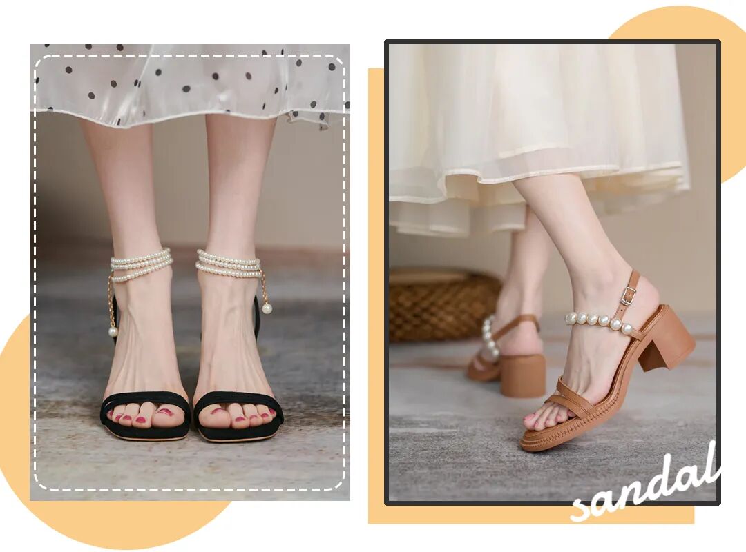在凉鞋上加入珍珠元素就多了优雅贵气的感觉,在比较正式的场合穿也完全不违和。