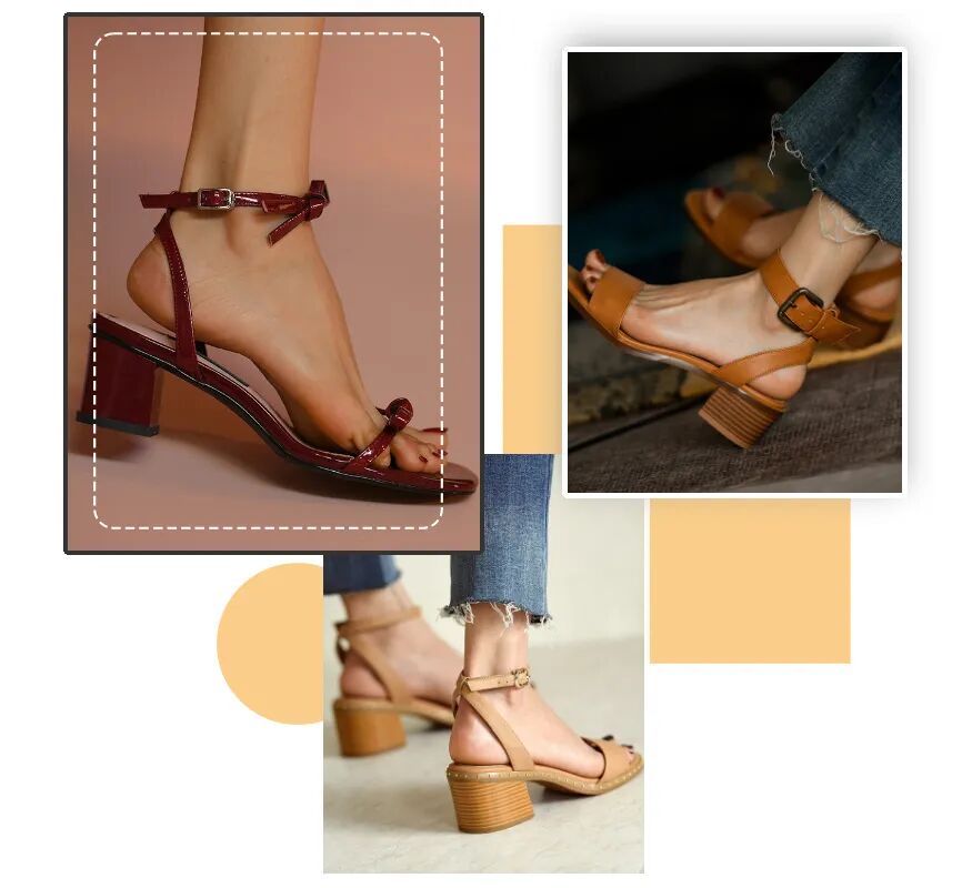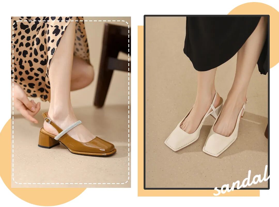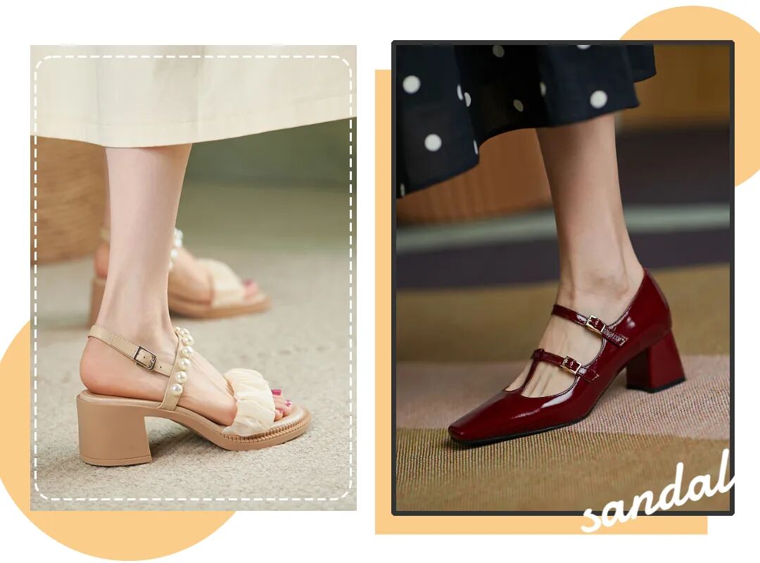 法式粗跟凉鞋也是既优雅又有风情的设计款,设计简约不俗套,配上飘逸的长裙超美!