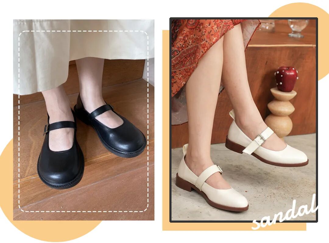圆头玛丽珍很有小家碧玉的感觉,match英伦风马衔扣是复古和潮流的碰撞,更有法式慵懒的feel~