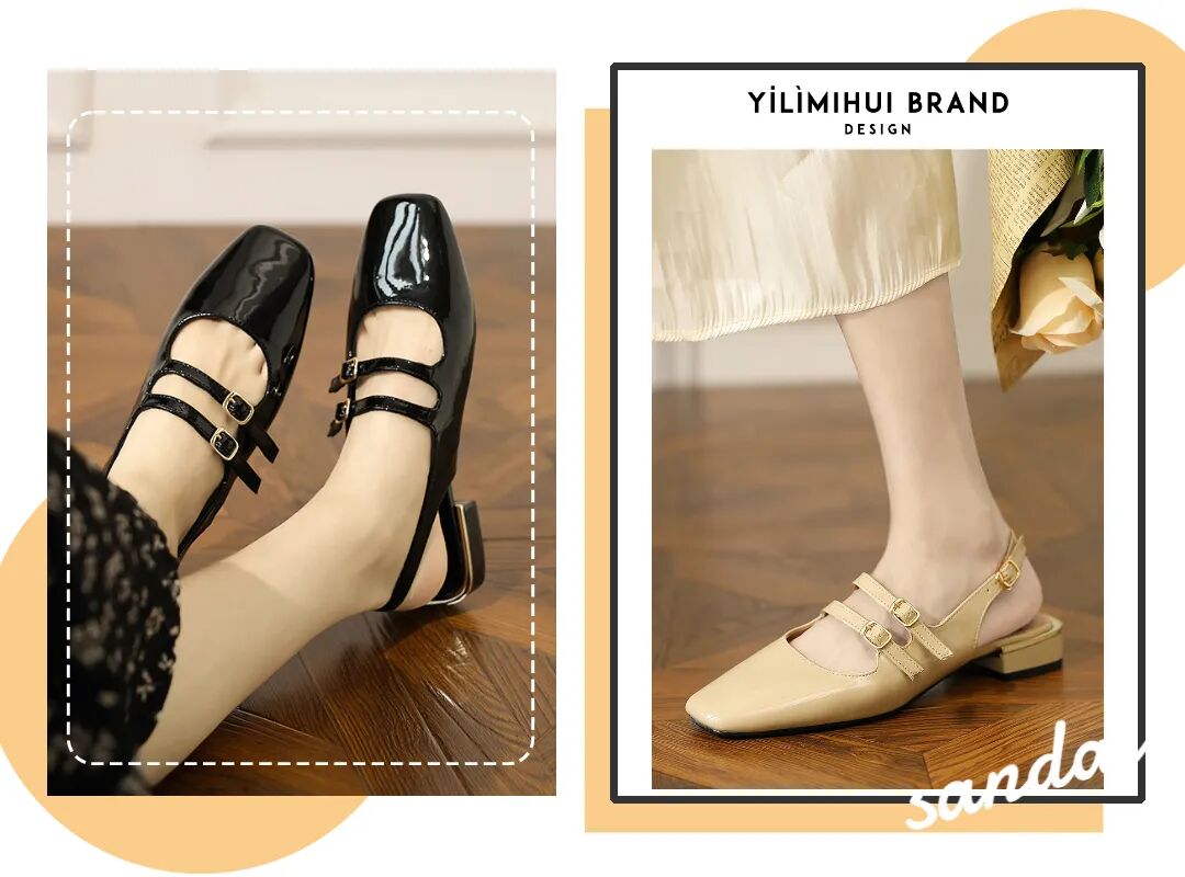 不习惯细高跟的可以看看他家的方头粗跟凉鞋,跟只有2~3cm新手也能很好驾驭,设计也是一如既往的森系文艺范。