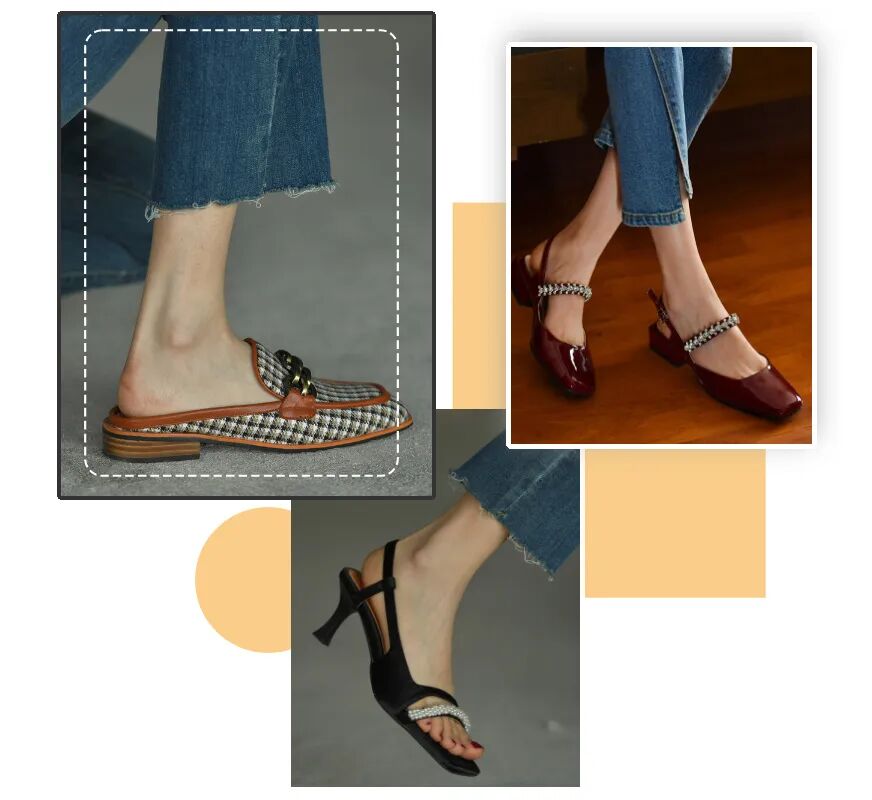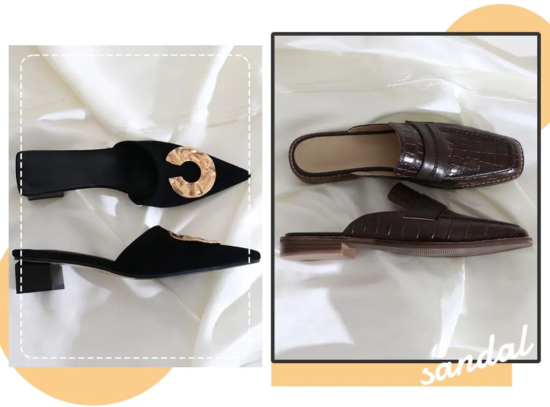 当然也会有当下时新的穆勒鞋,在里面融入了一些自己的想法让款式不同于市面上的一般设计。