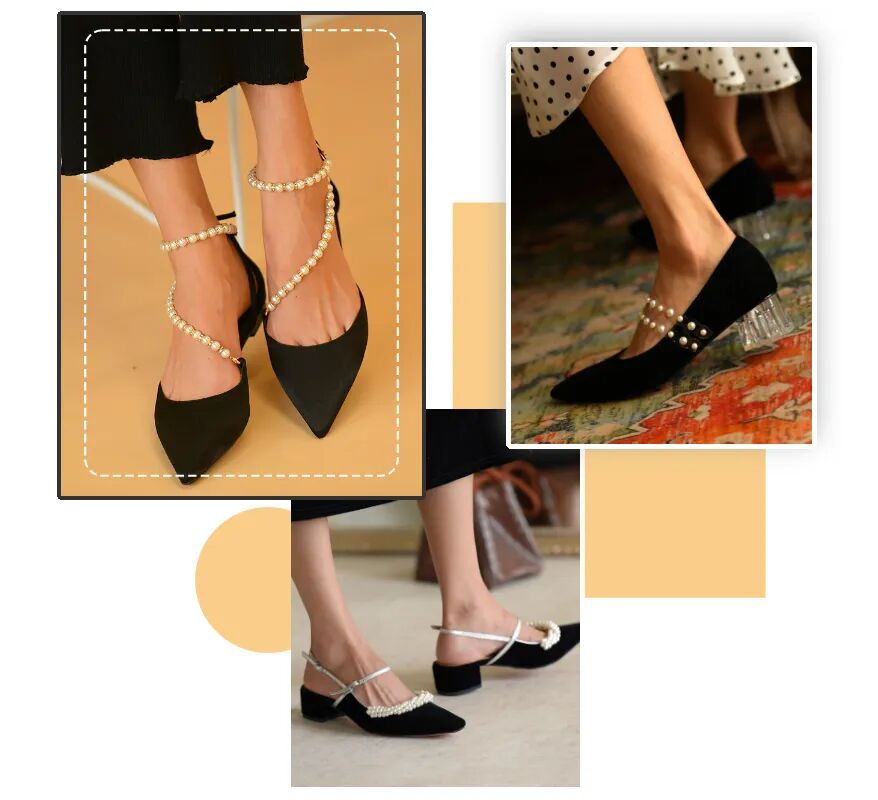 加入珍珠元素的尖头单鞋更有优雅女人味了,适合搭配丝绒长裙很贵气。
