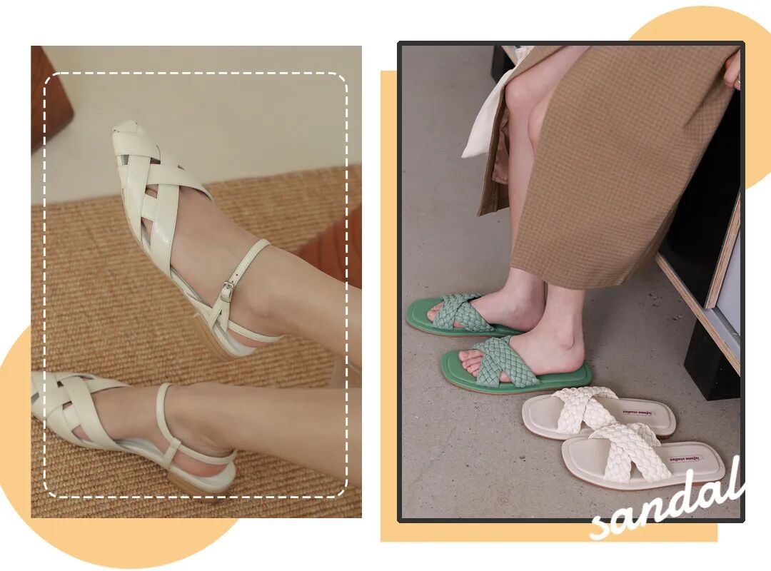 编织凉鞋也很适合去海边玩的时候搭配飘逸的长裙穿👇