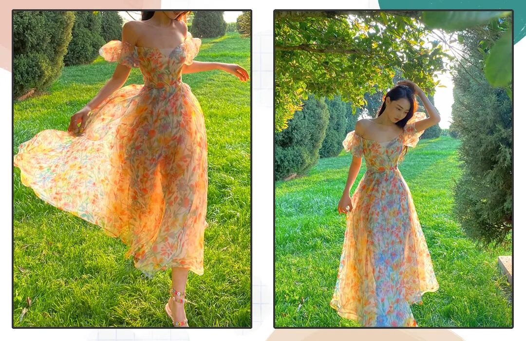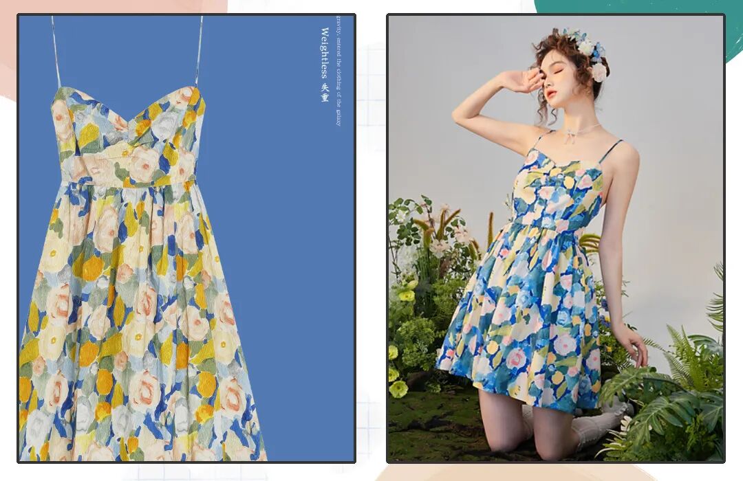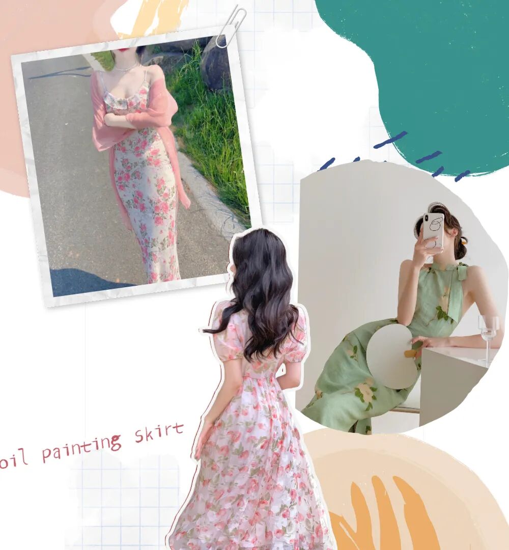 油画裙既有复古油画的独特韵味,又很有温柔惬意的氛围感。