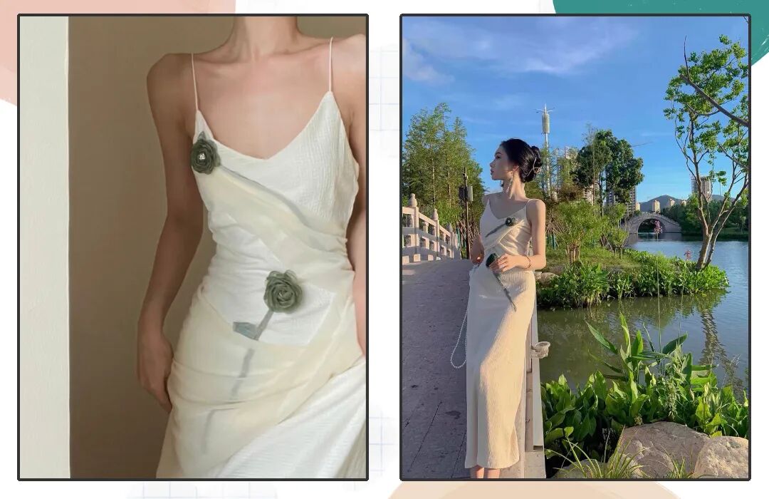 如果不喜欢很花哨的样式,这件立体山茶花裙一定适合你,很有古典大美人的气质。