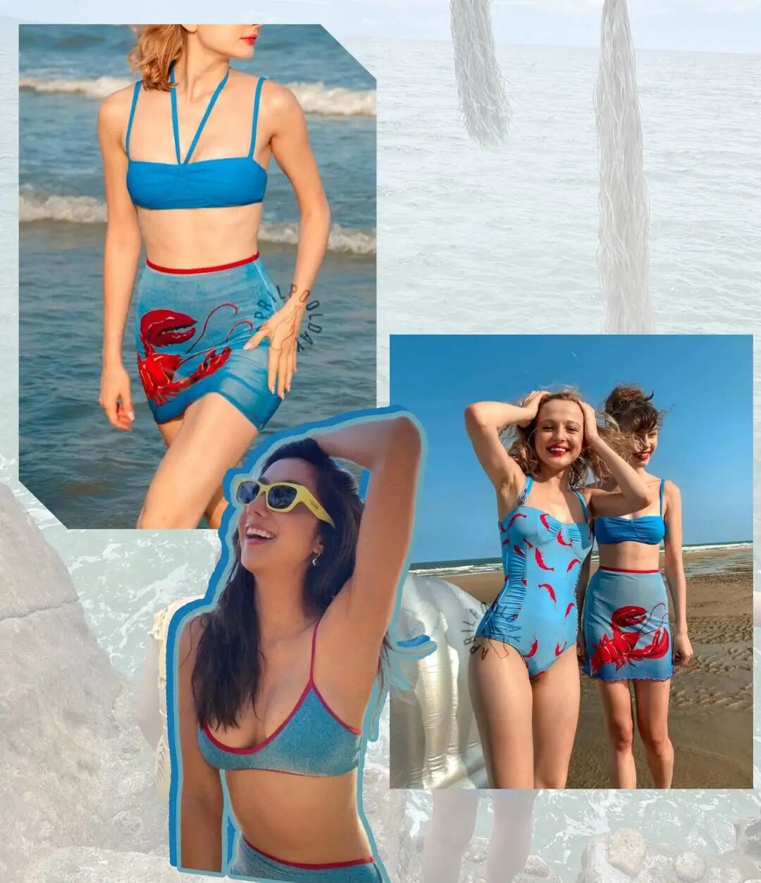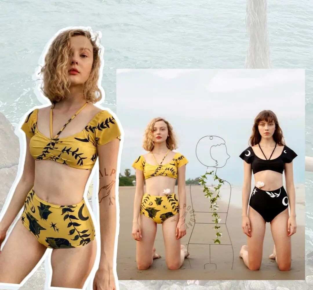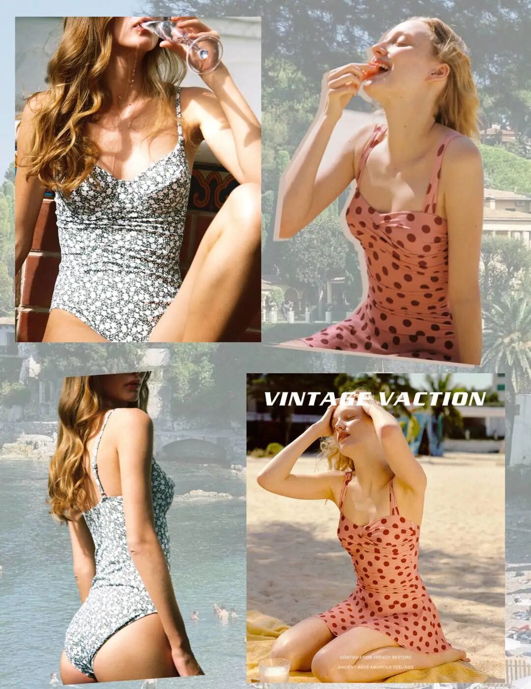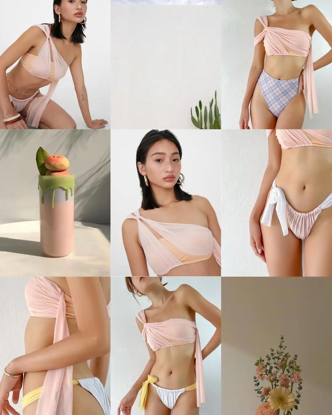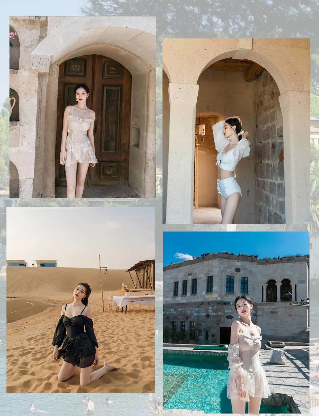 风格设计上比较有意思,基本和现在市面上流行的泳装有点小区别,拍照的话也不太容易撞款👇
