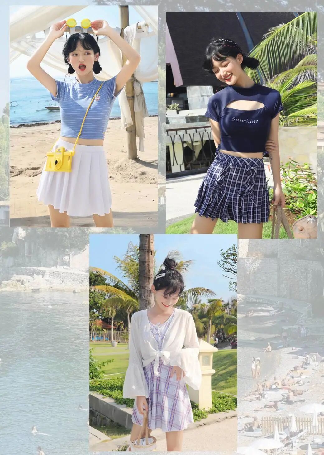 整体质量也比较OK,风格上基本都是两截式泳衣+马卡龙的配色,少女又活泼~