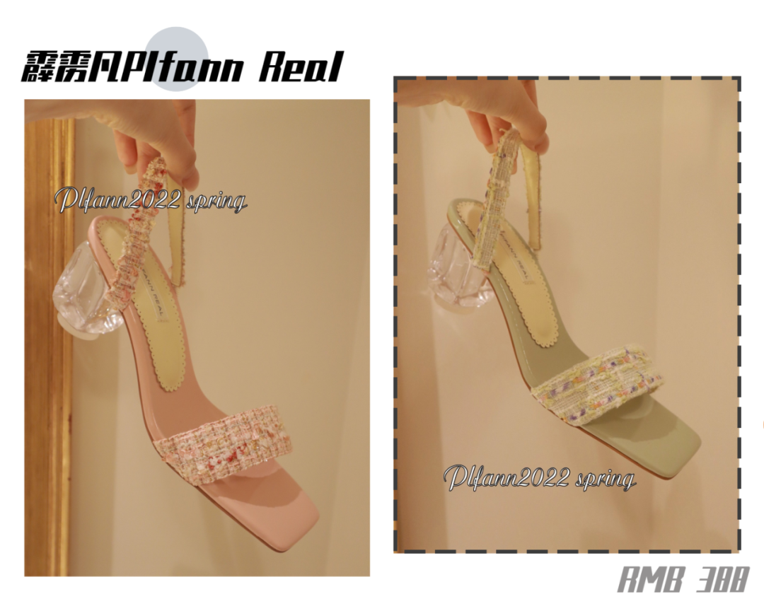 小香风的粗呢花纹元素运用在凉鞋上也是极好看的~ 搭配水晶鞋跟,还能有人比你温柔?