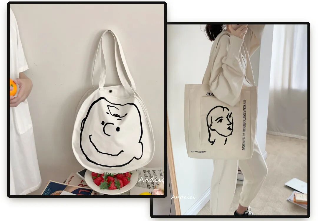 简洁的黑色简笔画配上白色帆布袋简约又清新。