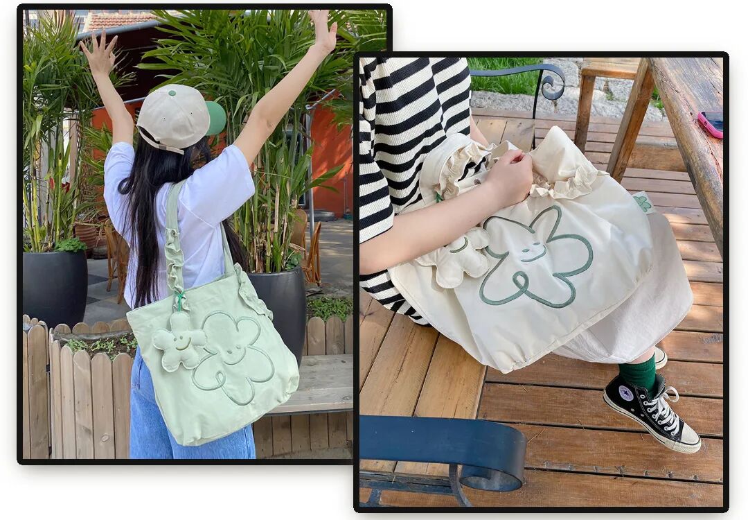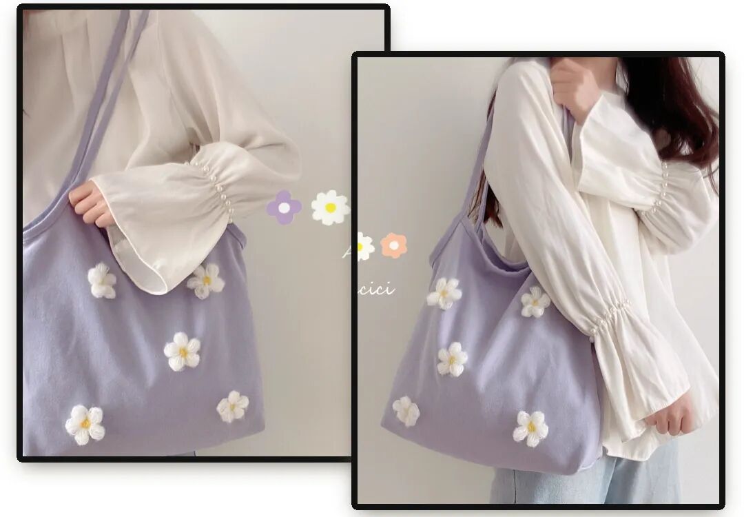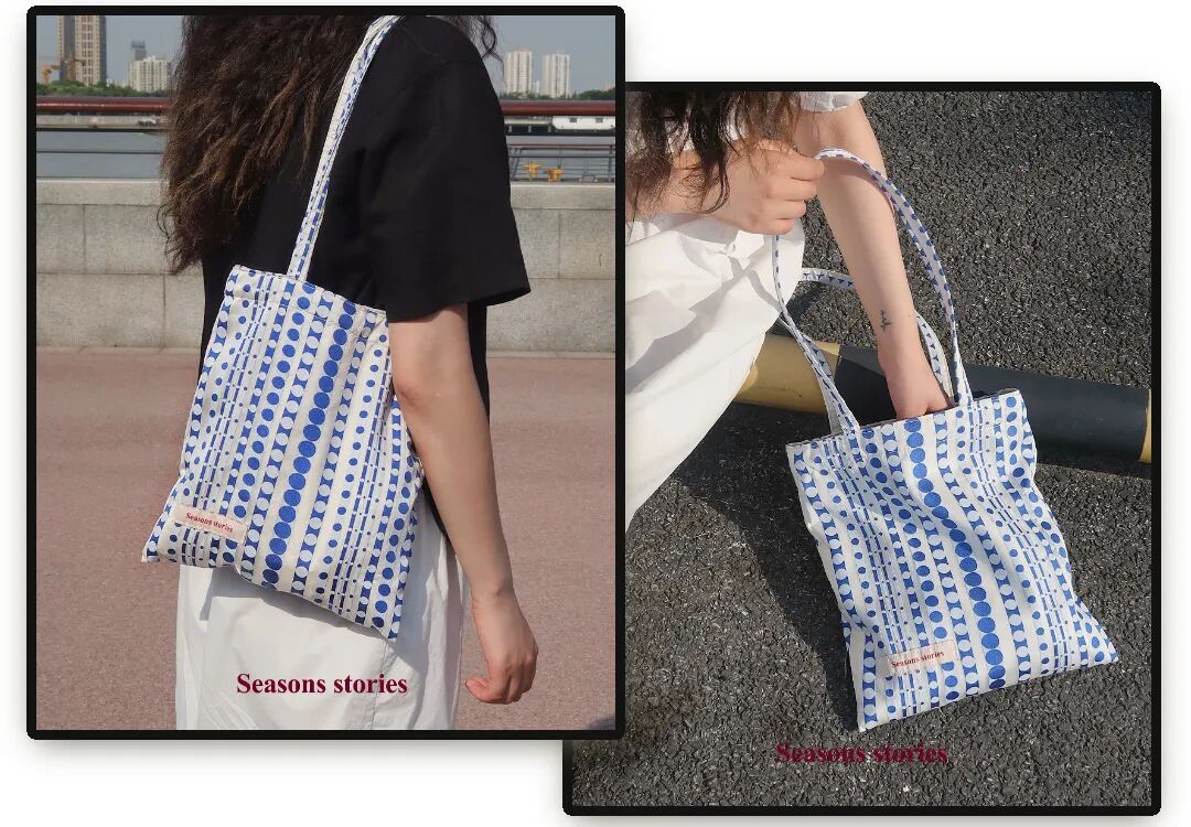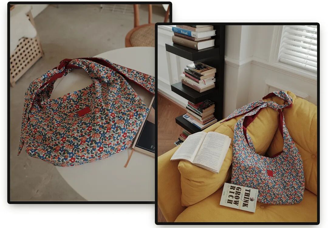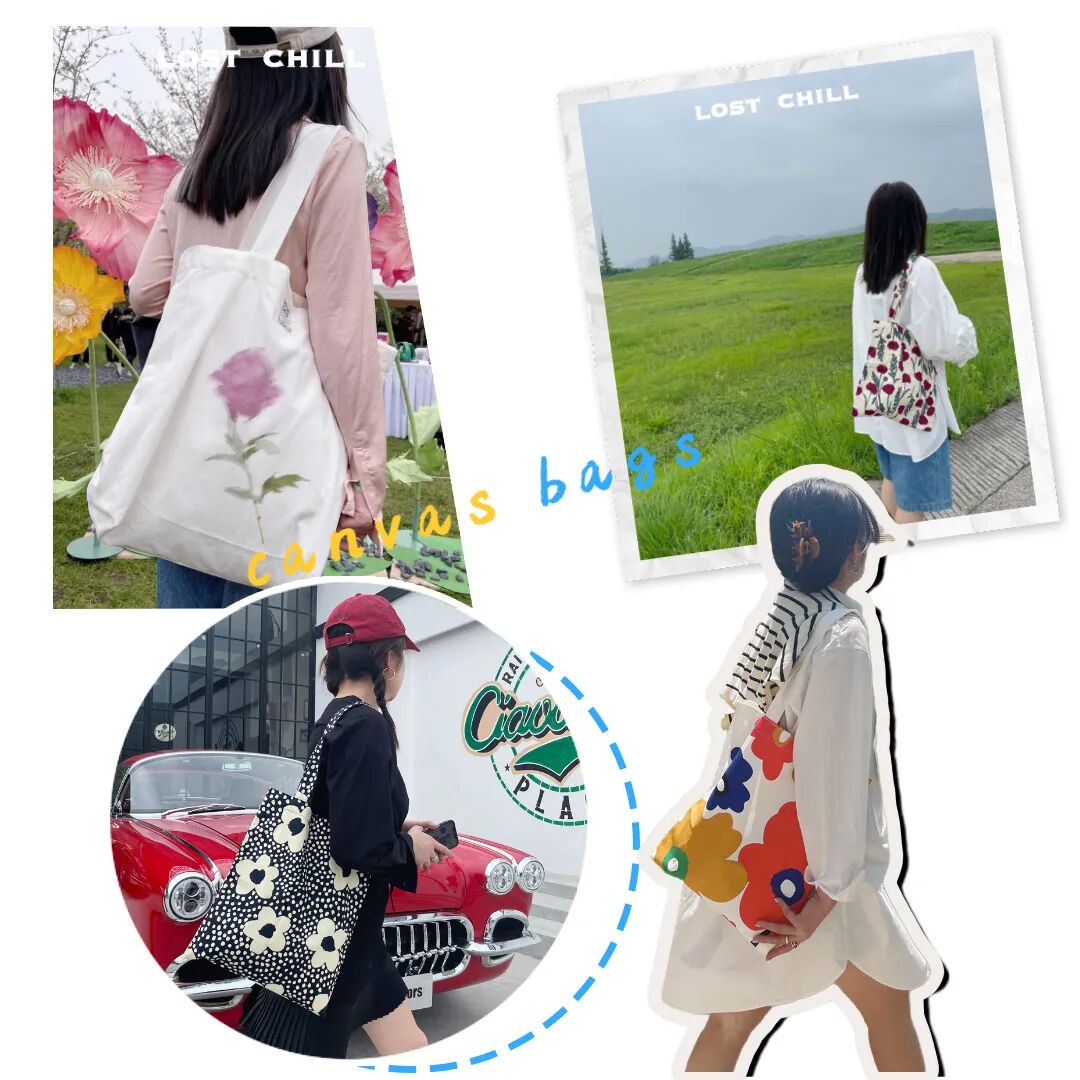 还有布满花纹的碎花帆布袋更有田园的感觉,配白t很适合。