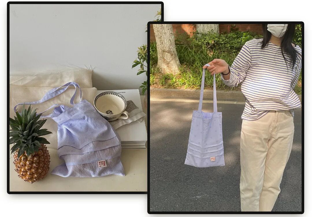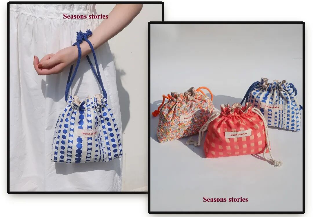 抽绳包袋更有俏皮可爱的感觉,搭配格纹or碎花清新甜美~