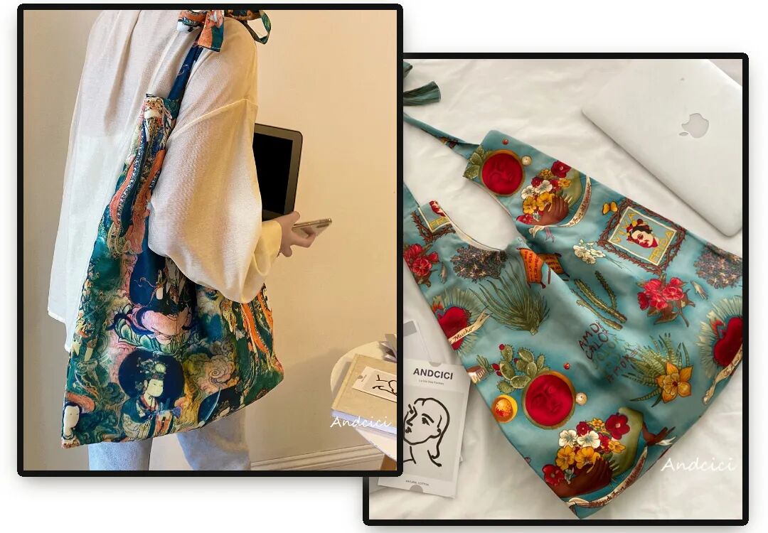把油画直接印在帆布袋上很有冲击力,文艺范儿十足。