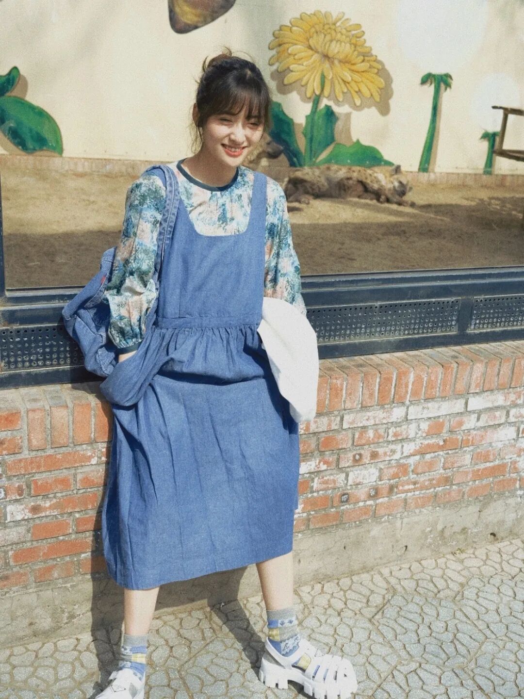 小size的帆布包炒鸡可爱,搭配牛仔背带裤一整个减龄穿搭。