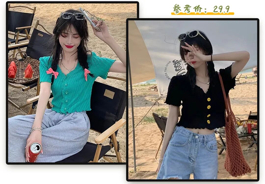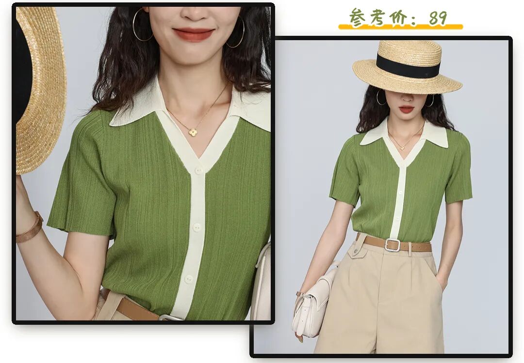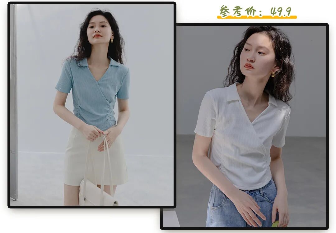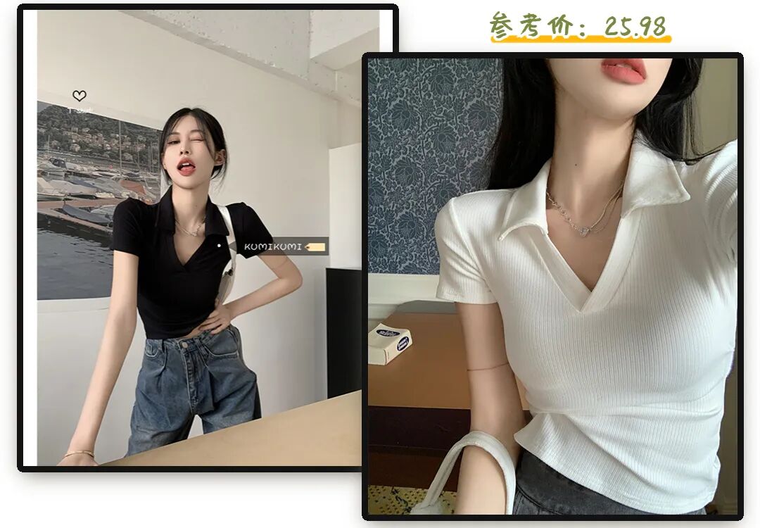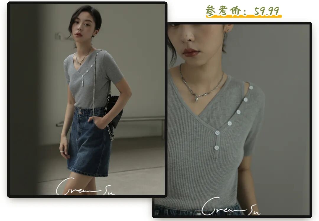 修身V领针织短袖温柔有气质,简单的纯色既能通勤也能约会👇