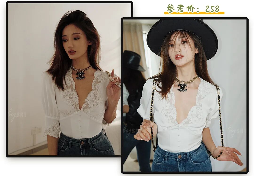衬衣+蕾丝的组合自带慵懒随性的女人味,适当的性感加上衬衫材质达到媚而不俗的效果👇