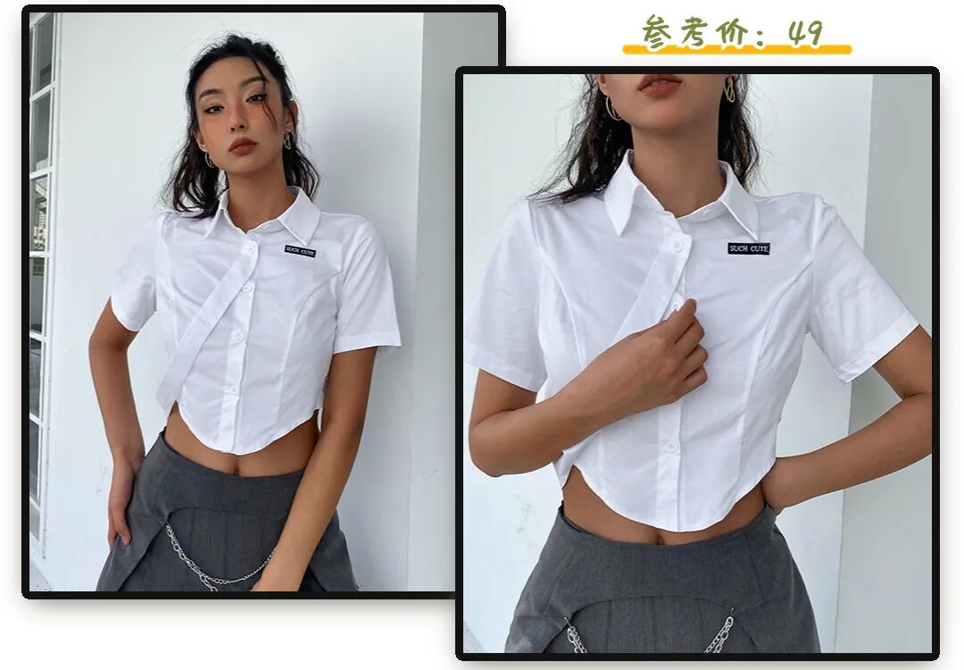 白衬衫在版型上做一些突破就能完全转变成另一种风格,下摆弧形设计超显腰细👇