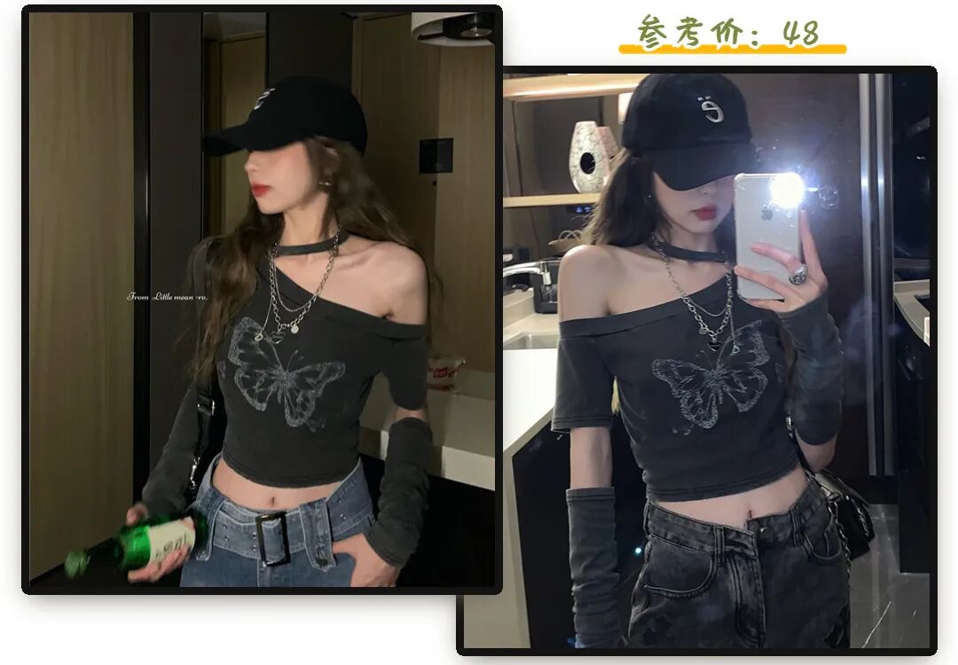 蝴蝶元素+单边露肩设计,又拽又酷~