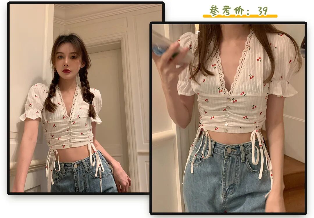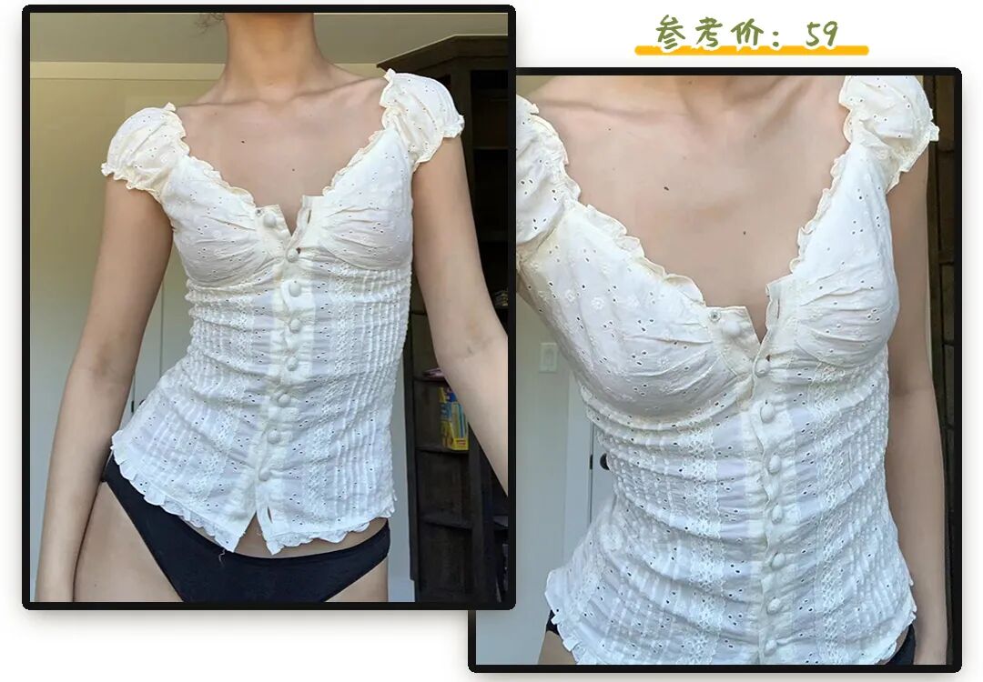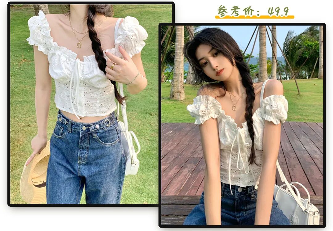 白色镂空泡泡袖搭条牛仔裤都很好看,适度露肤才是YYDS!