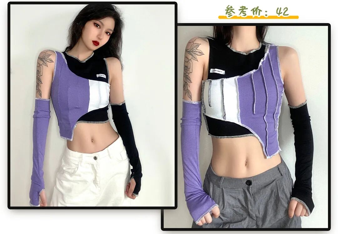 撞色拼接挂脖设计就很有拽姐气场,加上灵魂袖套立马化身千禧辣妹👇