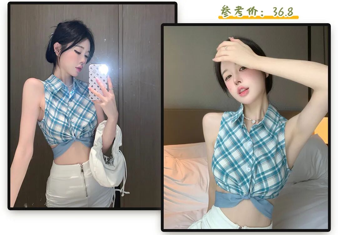 无袖绑带衬衫绝对的纯欲风,自带撩人慵懒气质(缺点就是很挑身材)~