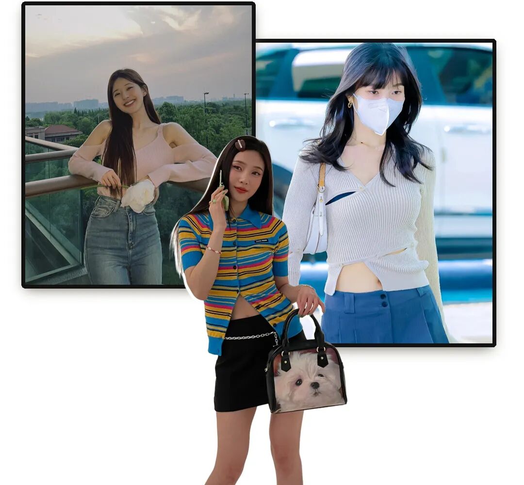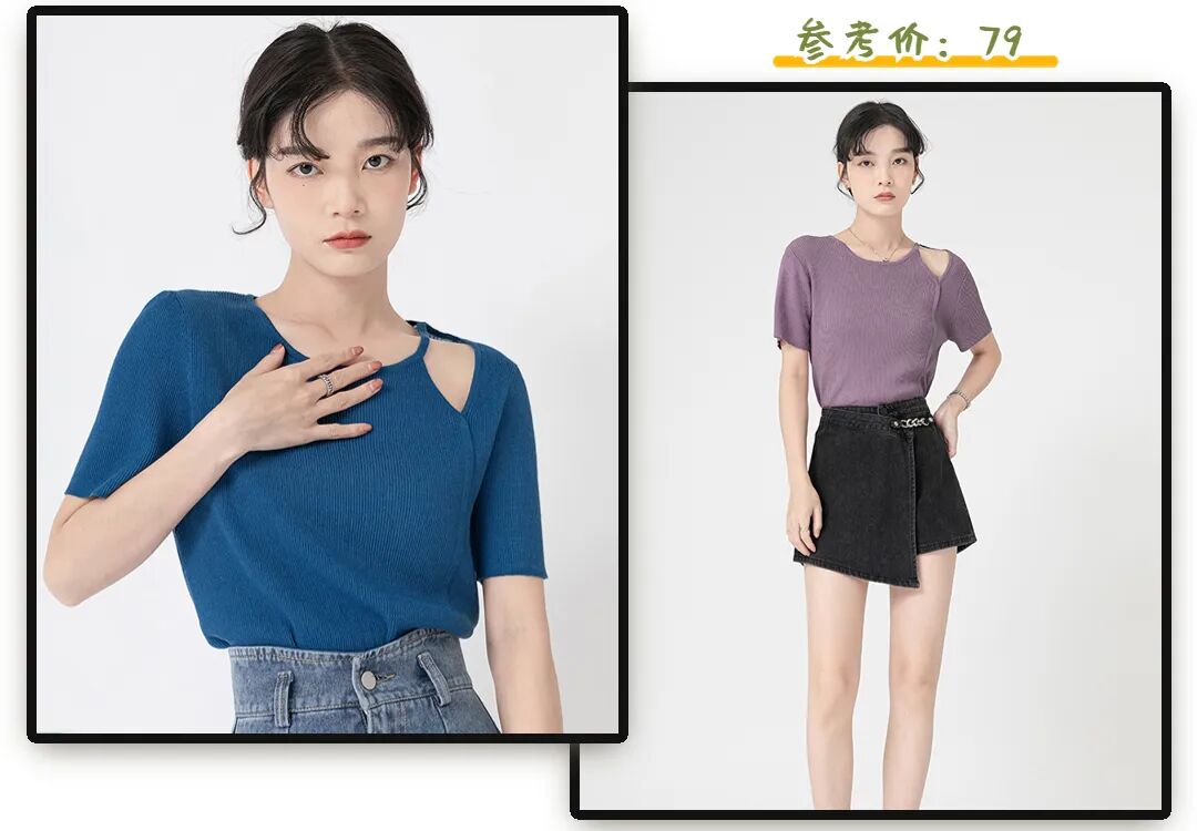 针织小上衣自带温柔属性,搭配一定的露肤就有种又甜又辣的矛盾感让人欲罢不能~