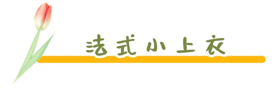 法式小上衣自带慵懒随性的味道,不管是搭配包臀裙还是牛仔裤都能适配出法式easy chic的女人味~