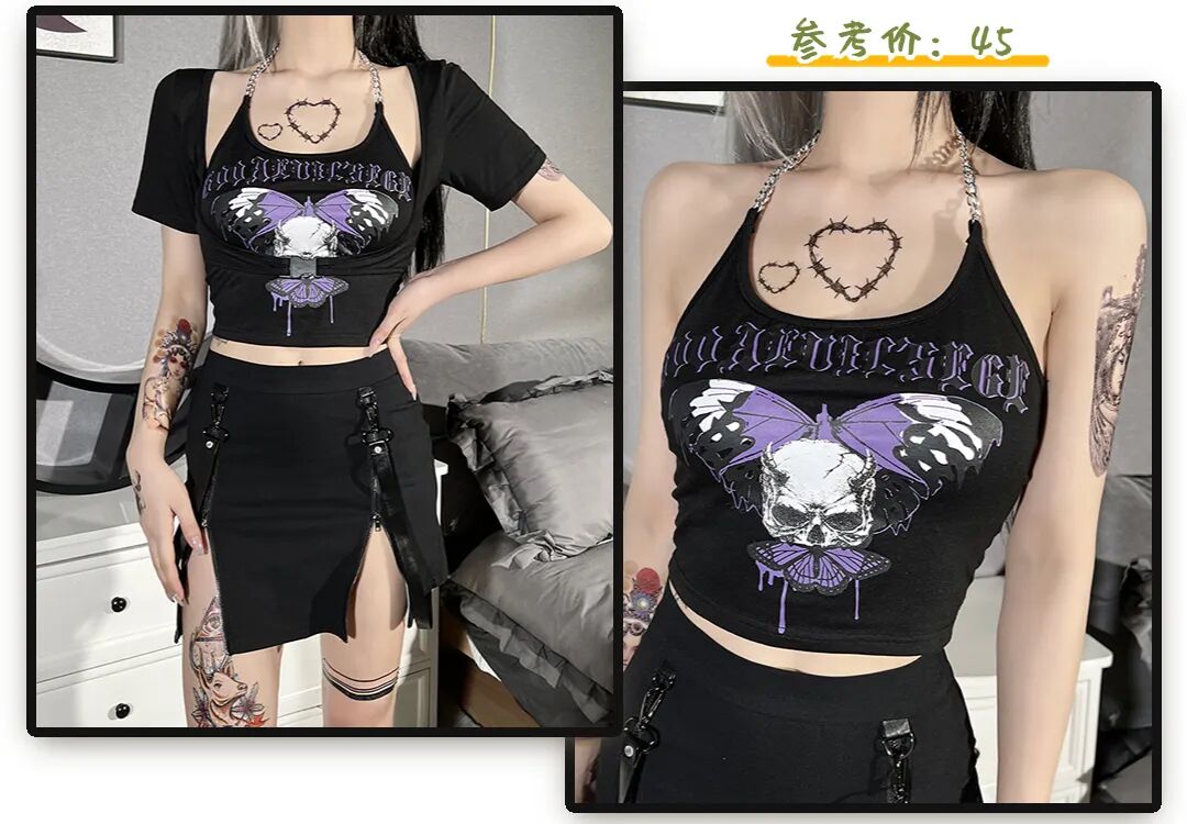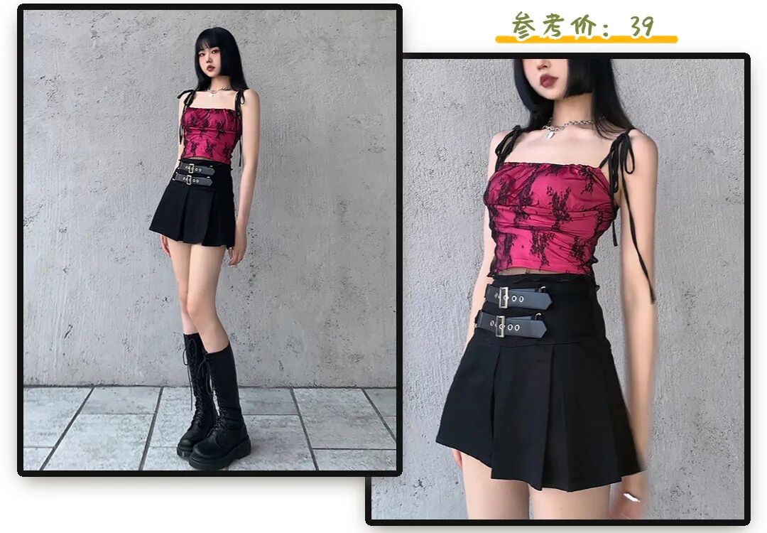 刺绣蕾丝元素融合进吊带有种暗黑萝莉的感觉,千禧辣妹的精髓拿捏了!