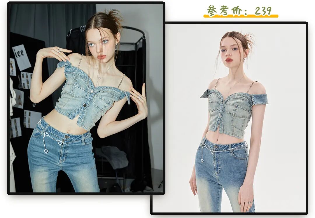 这家牛仔露肩上衣跟鞠姐的蝴蝶上衣有异曲同工之妙👇