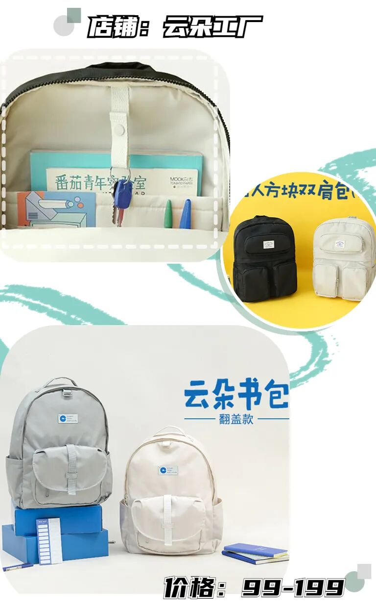 双肩包设计的也有甜美风,也有简约款,价格适中,细节到位,她家的包装也是绝绝子!