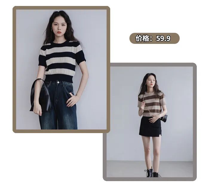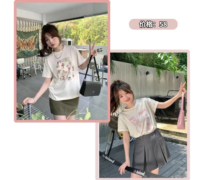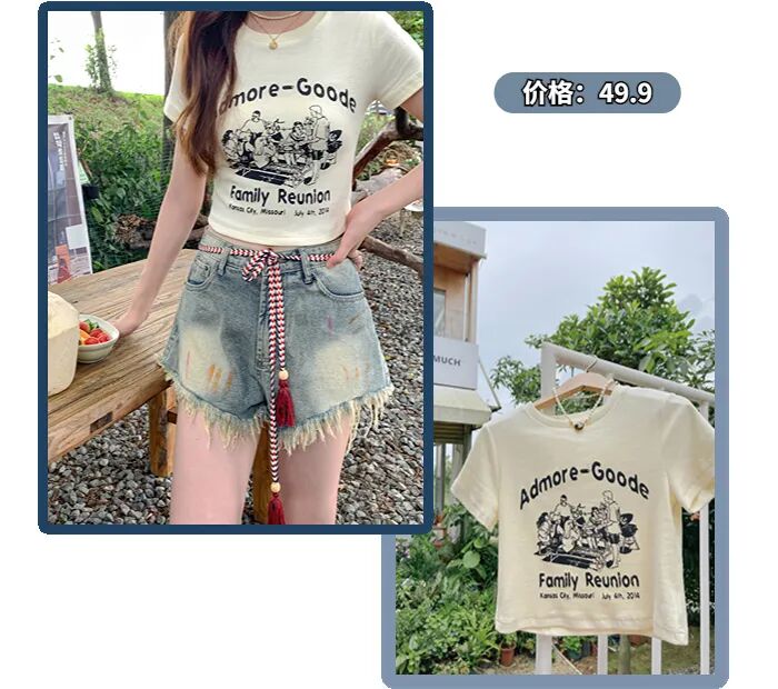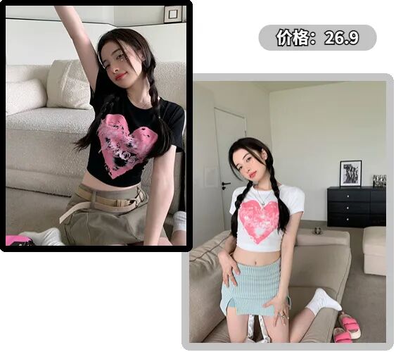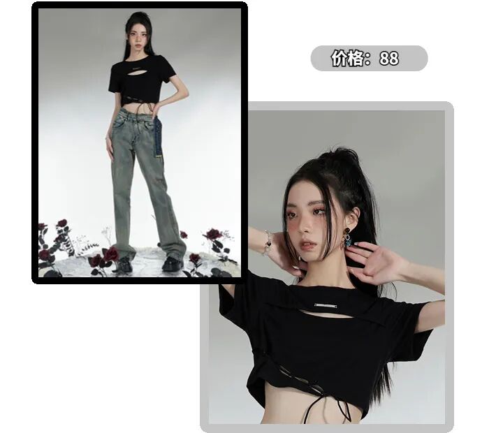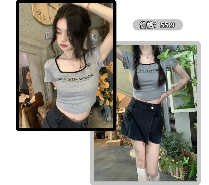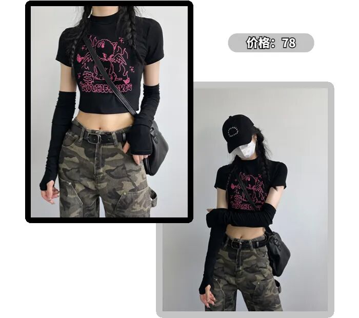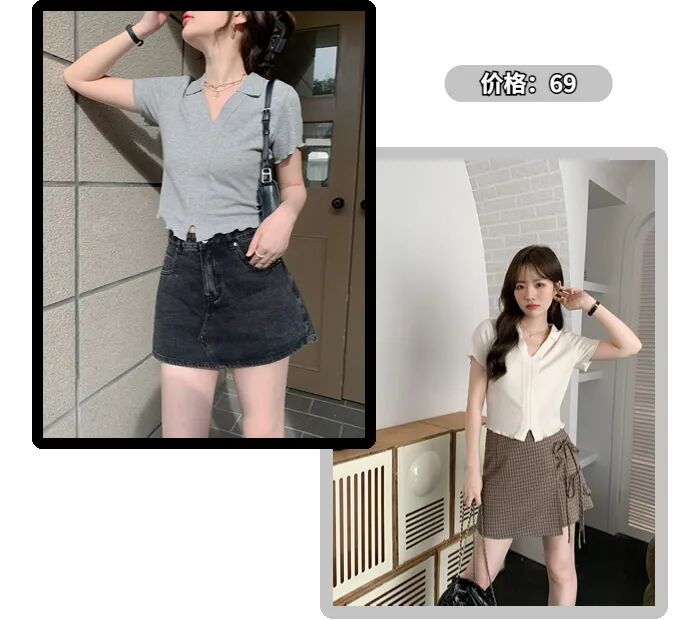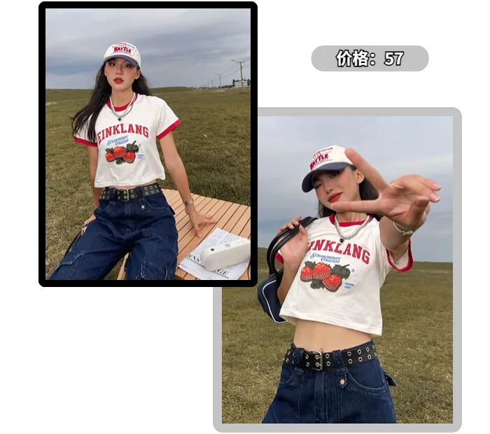 通常甜辣风格的短袖都是小短款版型,小短款的设计是拉高腰线修饰身材的一把好手!