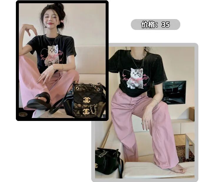 可爱的小猫咪谁不爱呢?甜酷感展现得淋漓尽致!想要获得独一无二的风格,必须拿下这款T!