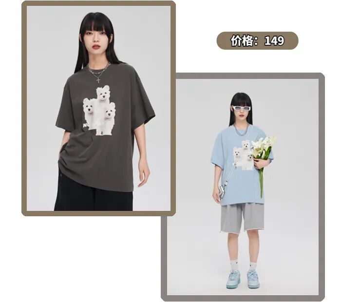 简单的短袖加上狗狗元素,宽松休闲的版型还很遮肉肉噢!这款灰色很洋气特别~