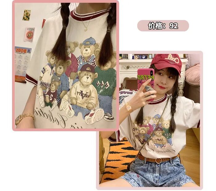 对卡通小熊充满了心动的感觉~小熊一直是甜美复古必备的元素,印在T恤上既活泼又可爱~