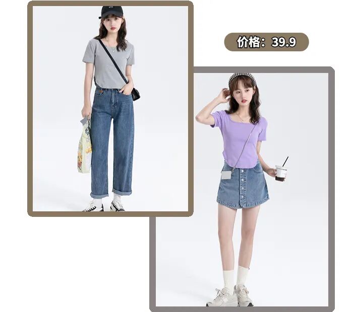 简单基础款纯色T,很能体现穿搭品味,怎么搭都OK,人手必备款式,显得身材修长~