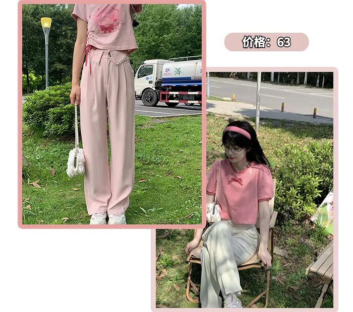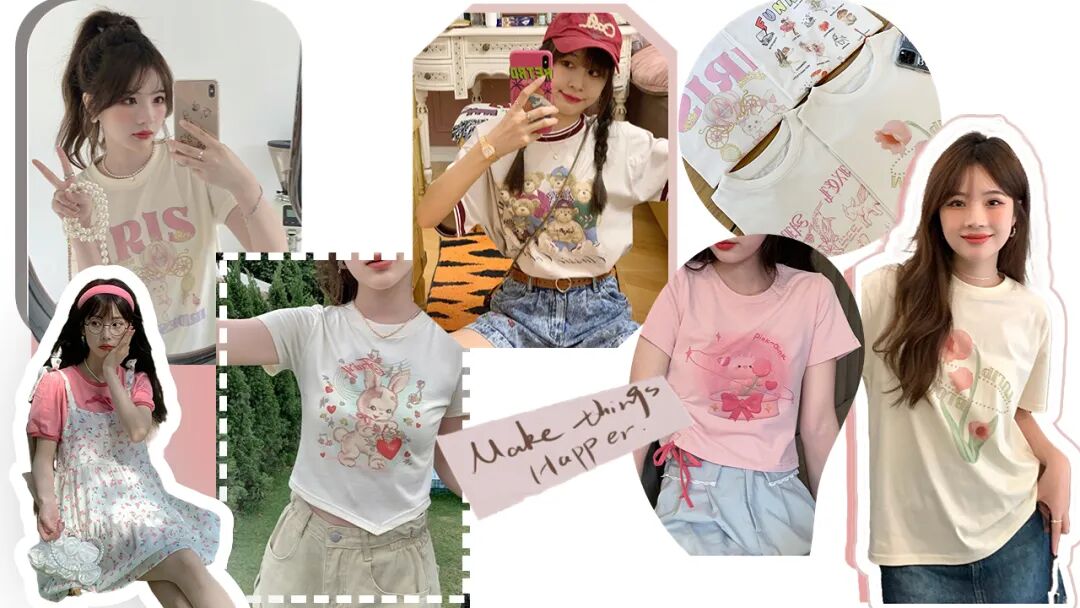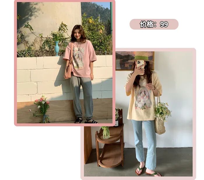 甜美风格的短袖基本上都是粉色,奶黄色、baby蓝这些温柔色,可爱又减龄~满满少女感!