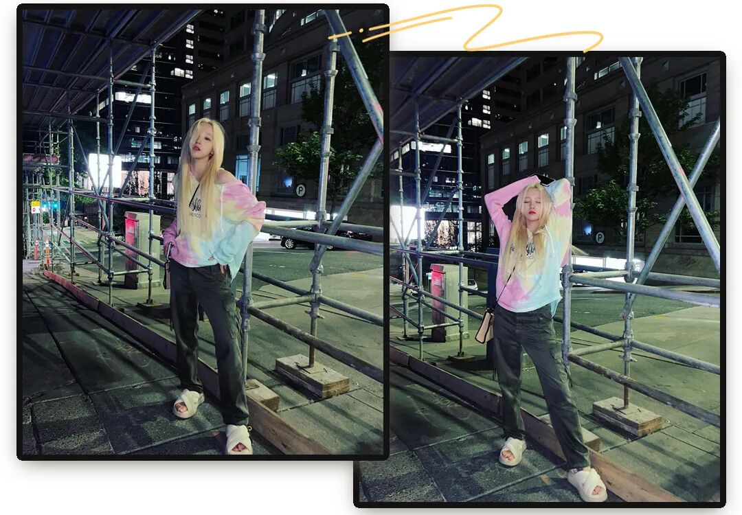 也可以试试工装裤更有中性style,配上扎染卫衣有摇滚少女内味了。
