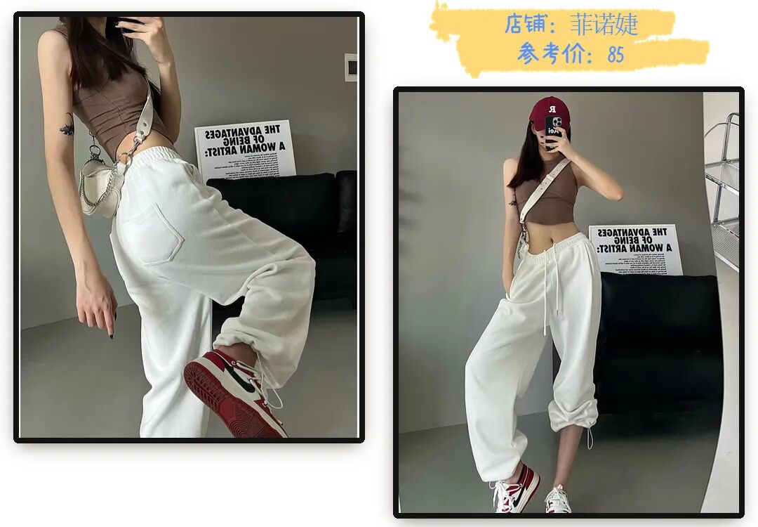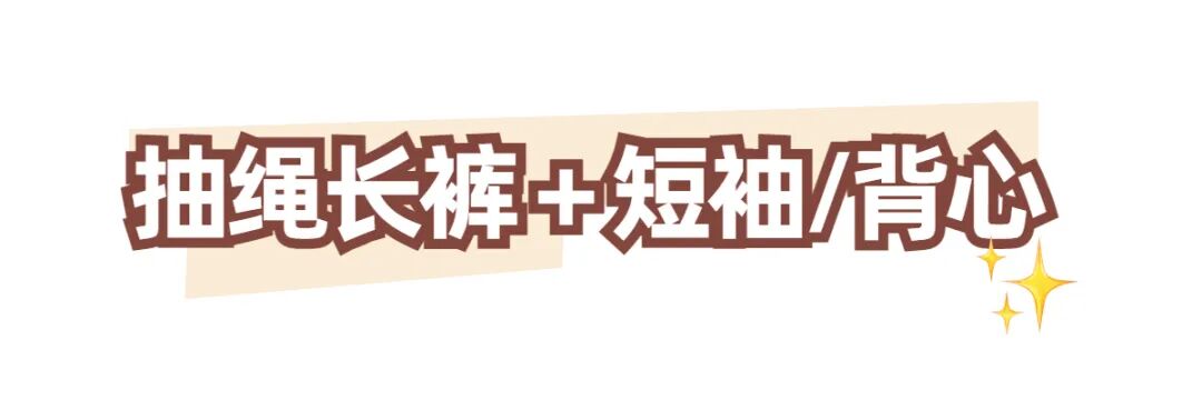 抽绳长裤的裤脚处加点束脚露出一点脚踝,既拉长了腿部线条又增加了穿搭清爽感。