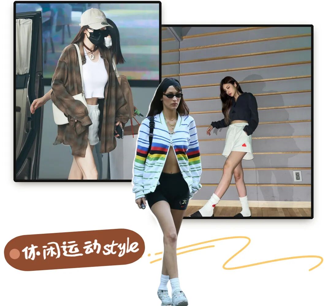 最简单还不容易出错的就是同色系衬衫+短裤,内里叠穿一件crop短上衣甜辣拽姐时刻在线!