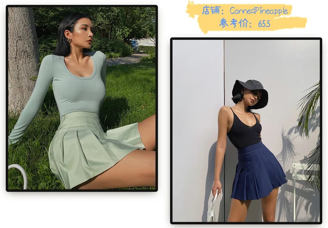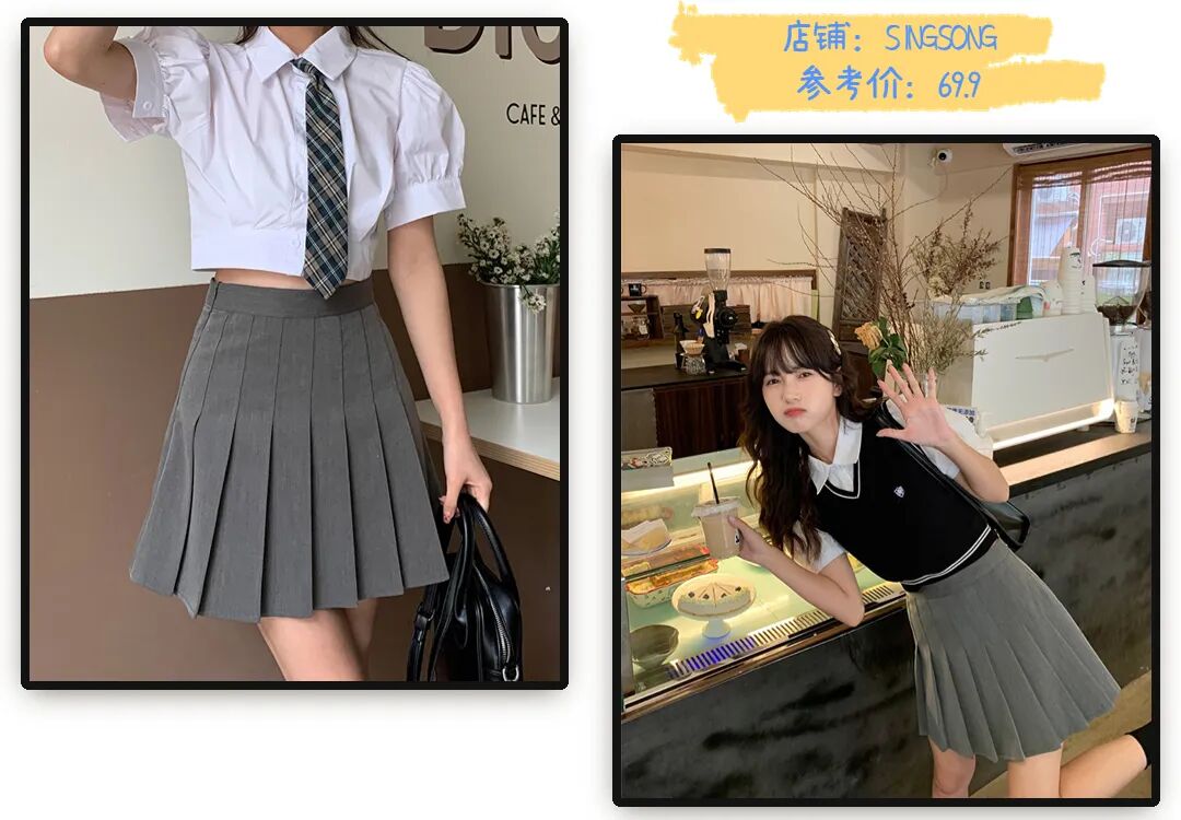 A字版型还炒鸡藏肉显瘦,腹部有肉的可以选择高腰款,配上小腿袜和玛丽珍妥妥的美式校园甜妹~
