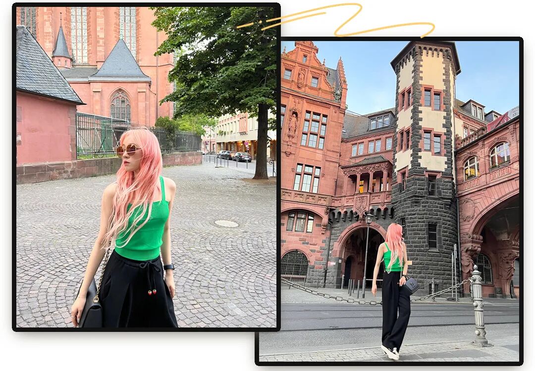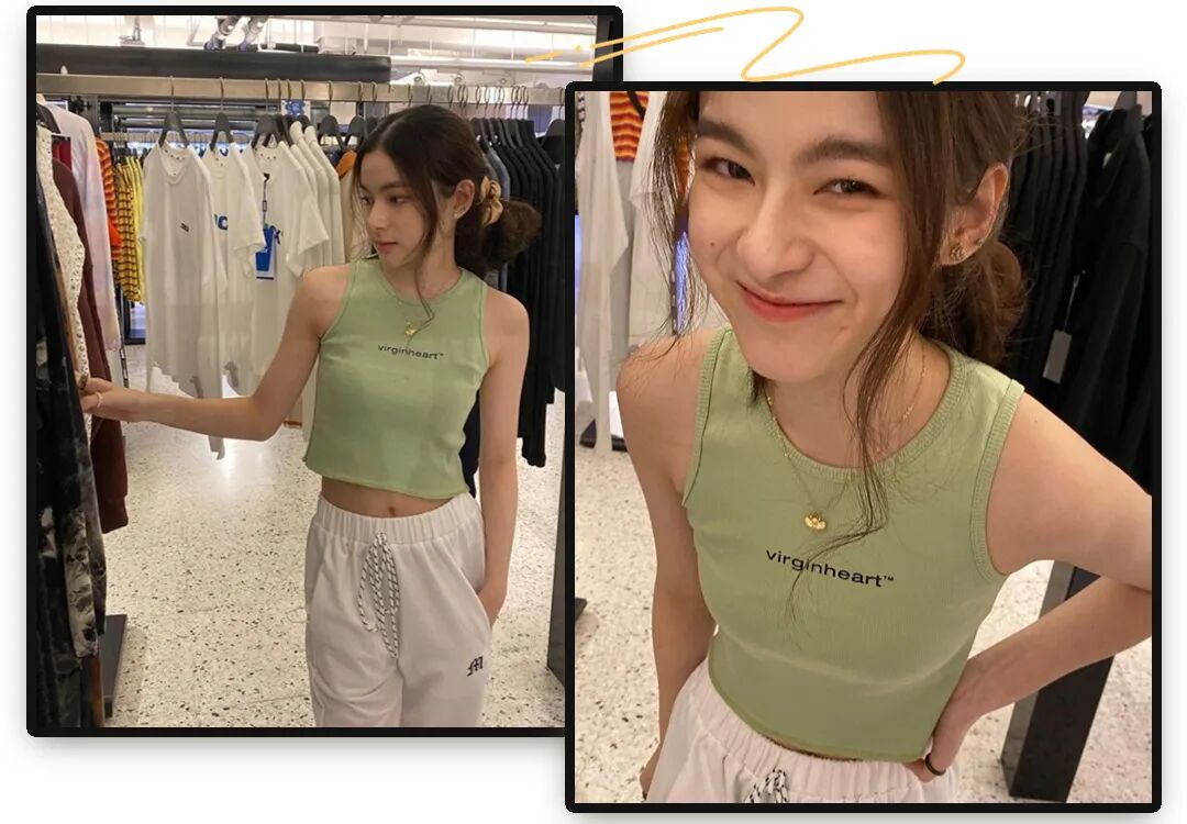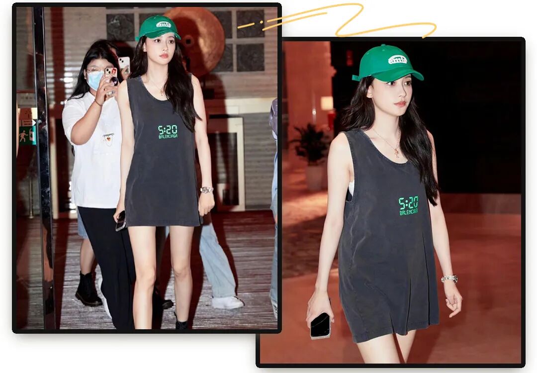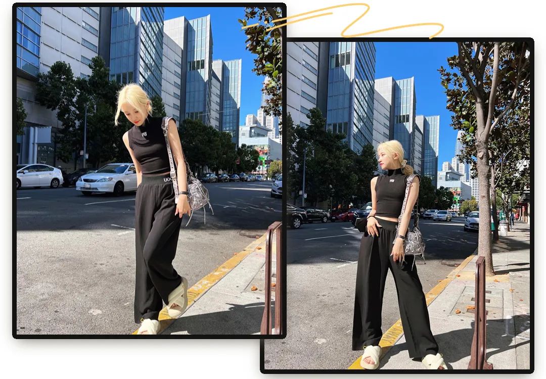 雨琦迪迪也是超宠幸抽绳长裤这个单品了,搭配露肤度较高的背心实现娘man平衡,既休闲又甜辣~
