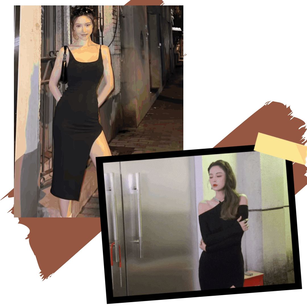 不管喜欢什么风格的宝子都不能错过一条黑色长裙,显瘦显白不易出错搭配的TOP3,就连女明星出席活动也会选择大气的黑色长裙。