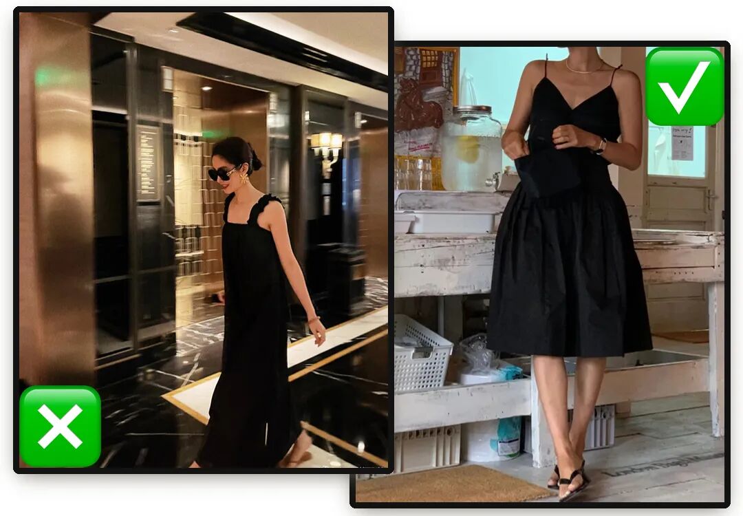 吊带黑色长裙自带慵懒随意气质,不管是度假还是约会都能完美适配~