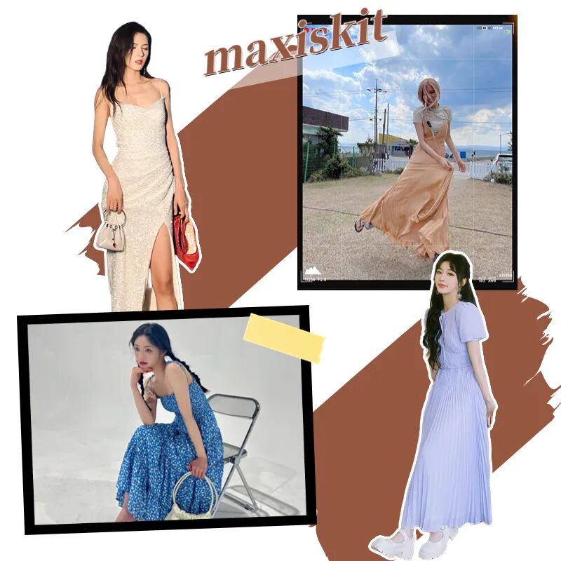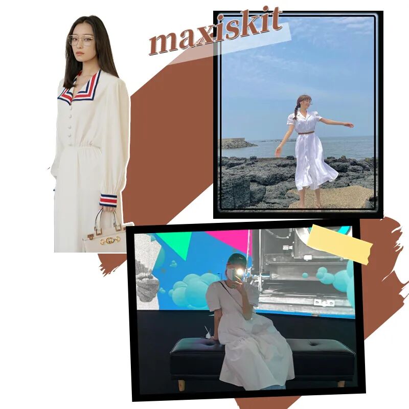 版型也一定要pick有腰身的款式更能凸显好身材,直筒长裙真的很容易翻车,如果身材高挑纤细的妹子请随意。