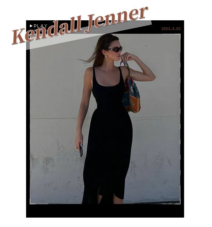 肯豆街拍这件黑色长裙真的太绝,大U型吊带+X型版型把她的好身材展现了十成十!