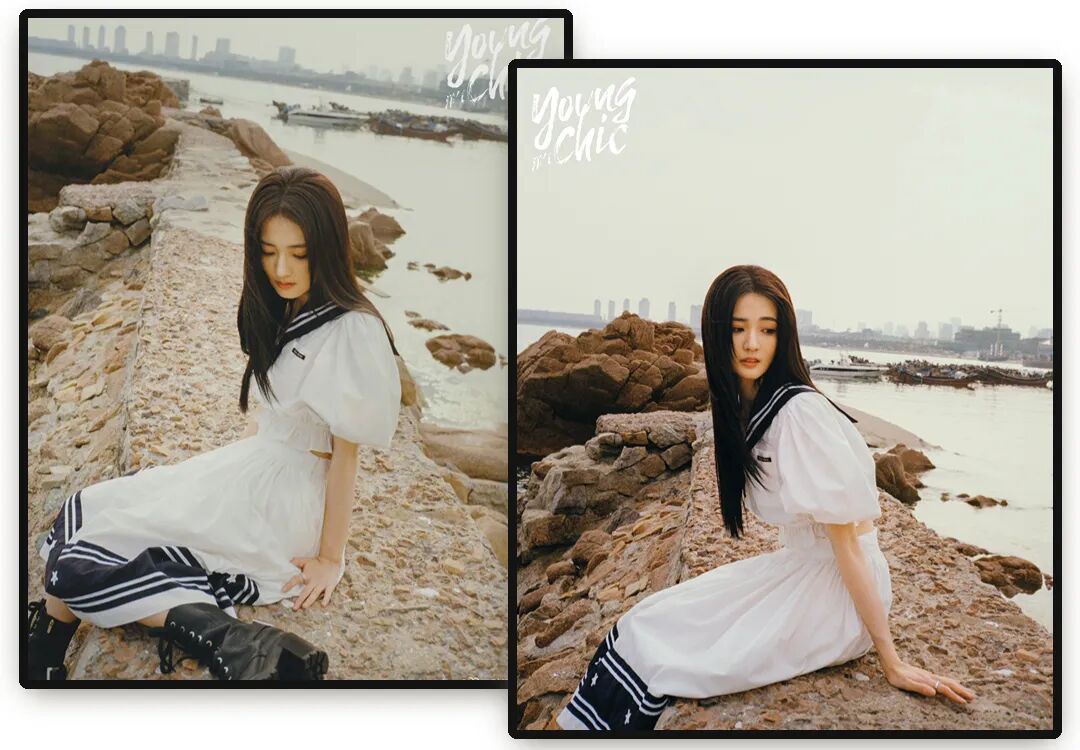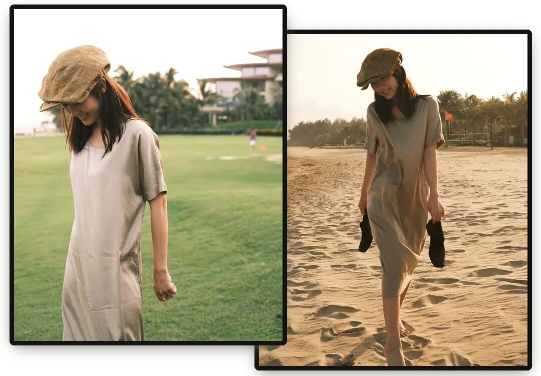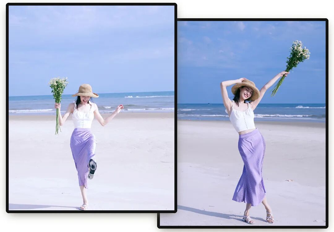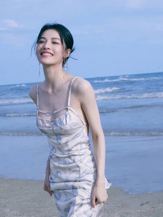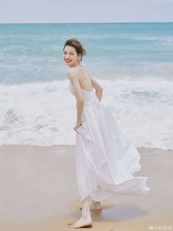 晚风吹拂的海边,一位穿着长裙的美丽少女...光想想就很美好!