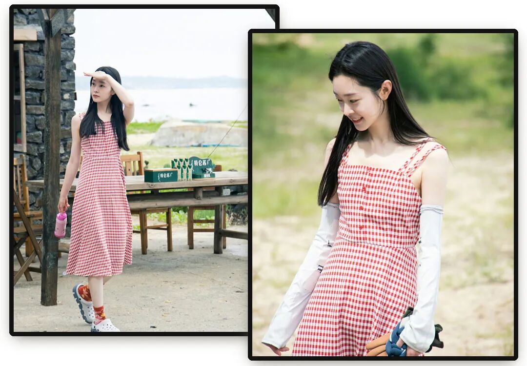 还有排列紧密的小格纹自带清新气质,宋轶在综艺的这套红色格纹吊带裙清丽干净~